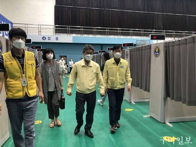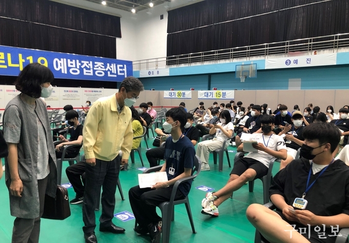 경상북도구미교육지원청(교육장 신동식)은 7월 19일(월)부터 시작하는 고3 및 고교 교직원(약 6,270명) 대상 코로나19 백신 예방접종 현장을 방문하여 접종 상황을 점검하고 접종에 참여한 학생과 교직원을 격려했다.