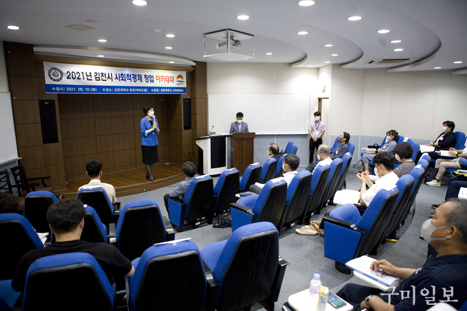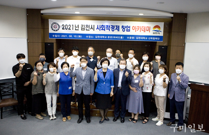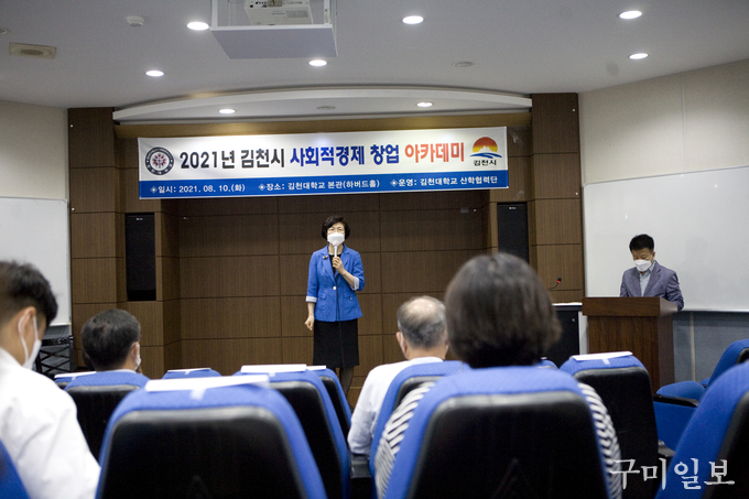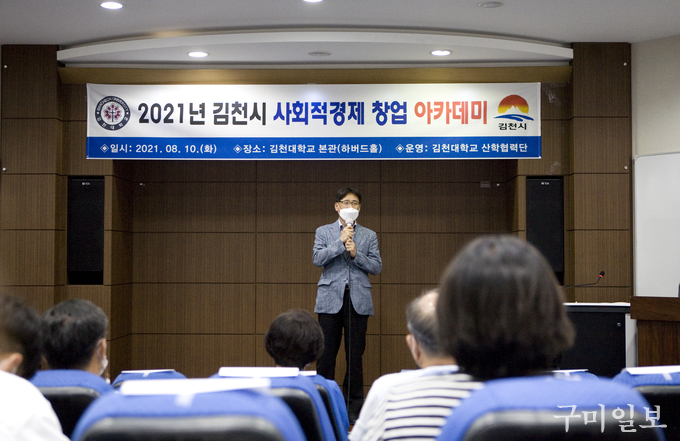 김천대학교(윤옥현 총장) 산학협력단(백열선 단장)과 김천시(시장 김충섭)는 지난 8월 10일(화) 김천대 본관 하버드홀에서 사회적경제 기업가를 발굴·육성하기 위해「2021년 김천시 사회적경제 창업 아카데미」를 개최했다.
