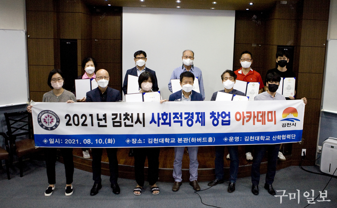 김천대학교(총장 윤옥현) 산학협력단(단장 백열선)은 지난 8월 31일(화) 김천대 본관 하버드홀에서 지역의 사회적경제 기업가를 발굴·육성하기 위한 “2021년 김천시 사회적경제 창업 아카데미 수료식”을 개최했다.