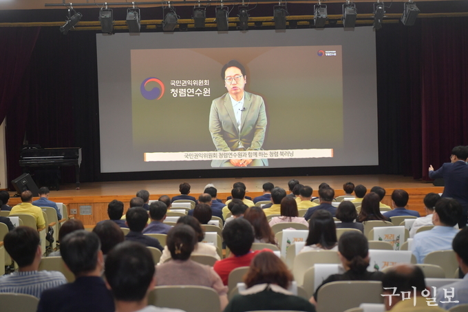 청도군(군수 이승율)은 지난 9월 3일(금) 군민회관에서 군의회 의원, 공직자 등 220여명이 참석한 가운데 공직사회의 부정부패를 척결하고 공정하고 청렴한 조직문화를 조성하기 위하여 사회적 거리두기를 실천하면서 「공무원의 청렴 및 이해충돌방지법 동영상 교육」을 실시했다.