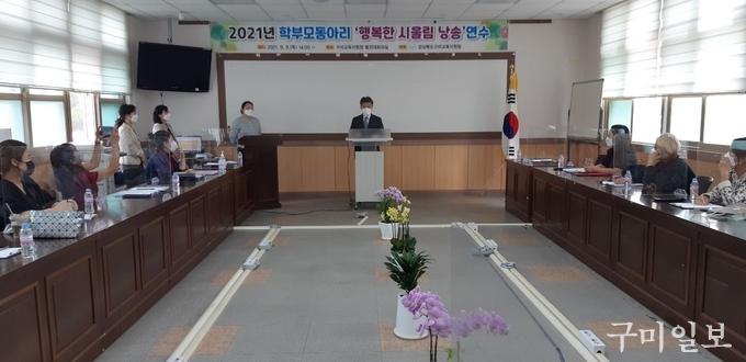 경상북도 구미교육지원청(교육장 신동식)은 9월 9일(목) 경상북도 구미교육지원청 별관회의실에서 ‘행복한 시울림 낭송’을 주제로 구미시학부모회장협의회 동아리 연수회를 가졌다.