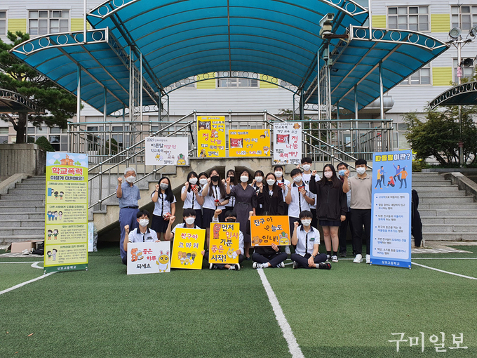 상모고등학교(교장 안정복)는 학교폭력 근절을 위해 지난 9월 10일(금) 상모고 바른말지킴이단 주관의 등굣길 학교폭력 예방 캠페인을 실시하였다.