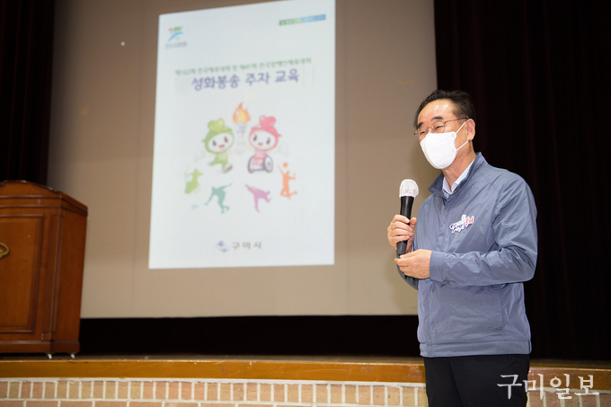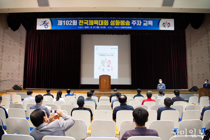 구미시(시장 장세용)는 지난 9월 27일(월) 오후 3시 구미시 민방위교육장에서 제102회 전국체육대회 성화봉송 주주자, 부주자 40여명에 대한 교육을 실시하였다.
