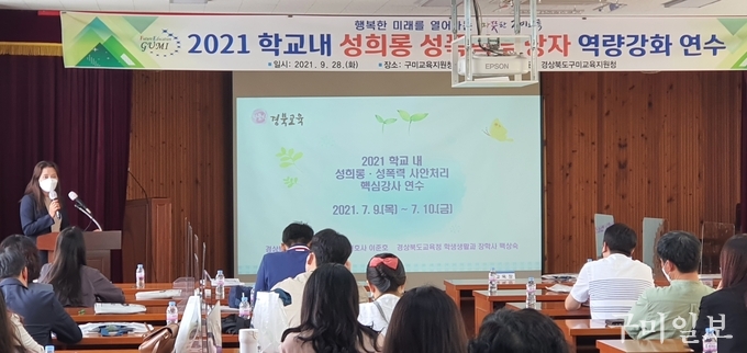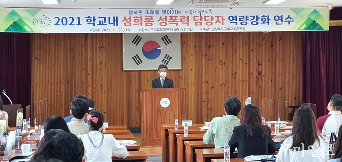 경상북도구미교육지원청(교육장 신동식)은 학교 폭력 없는 교육 현장을 위해 관내 초‧중‧고등학교를 대상으로 하반기 학교폭력 책임교사 및 성희롱‧성폭력 사안 처리 담당자 역량 강화 연수회를 9월 23일(목), 9월 28일(화) 두 차례 실시하였다.