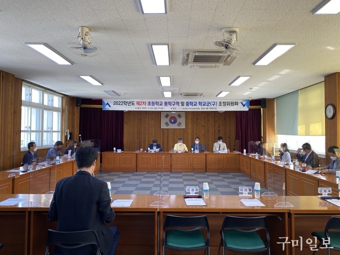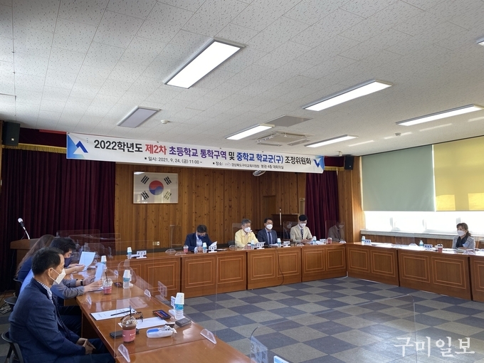 경상북도구미교육지원청(교육장 신동식)은 지난 9월 24일(금), 구미교육지원청 대회의실에서 2022학년도 제2차 초등학교 통학구역 및 중학교 학교군(구) 조정위원회를 개최했다. 경북도의원, 구미시의원, 초·중학교장, 학부모회장협의회 임원, 읍·면·동장 등 외부위원 8명과 내부위원 2명 등 10명이 참석한 가운데 지난 8월 실시한 2022학년도 제1차 초등학교 통학구역과 중학교 학교군 및 중학구 조정위원회에서 재심의 결정된 현일중학구 한시적 조정 계획과 지산초등학교 현일중학구 편입 조정 안건에 대해 다시 한번 심도 있는 논의를 펼쳤다.