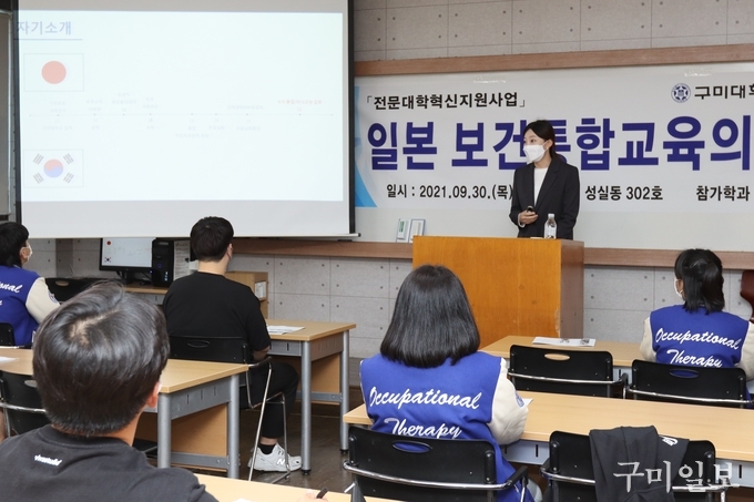 구미대학교(총장 정창주) 작업치료과 정규 학사 졸업생으로 한국 학생 최초로 일본 군마(群馬)대 대학원에 진학한 김시영 씨가 모교에서 특강을 가져 눈길을 끌었다.
