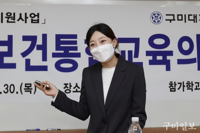김시영 씨는 9월 30일(목) 구미대 보건통합교육센터(센터장 이윤미)에서 ‘WHO(세계보건기구)의 IPE(보건의료통합교육) 이해’를 주제로 보건학부 학생들에게 특강을 했다.