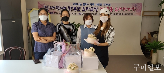 경상북도구미교육지원청(교육장 신동식)은 10월 5일(화)부터 11월 2일(화)까지 2021 해피홈 장애학생 가족지원 사업의 일환으로 ‘마음을 요리하다!’학부모 요리교실을 구미시 송정동의 단비 플라워 떡케익 공방에서 운영한다.