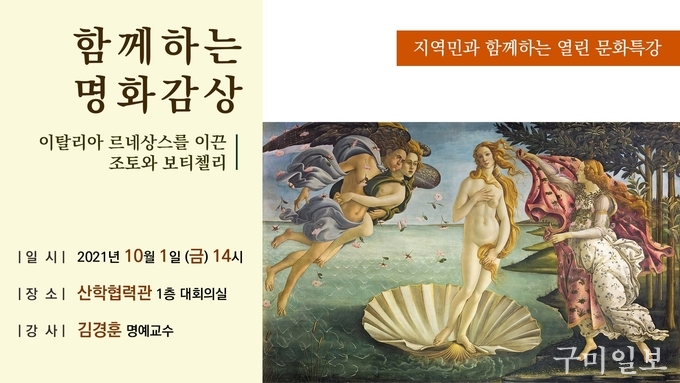 금오공과대학교가 지역사회 문화공헌 활동의 일환으로 김경훈 명예교수를 초청해 ‘르네상스 시대 이탈리아 미술’에 대한 문화 특강을 개최했다.