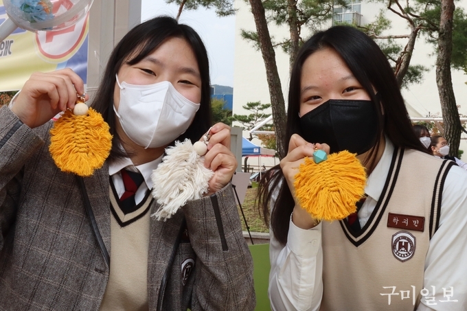 열쇠고리 만들기 체험에 참여한 김주연(구미 형곡고, 사회복지과 지원) 학생과 친구인 하지민 학생(구미 형곡고, 응급의료부사관과 지원)은 “처음에는 긴장했는데 교수님들이 친절하게 맞아주셔서 편하게 면접을 볼 수 있었다”며 “친구와 열쇠고리를 만들어 우정과 추억을 쌓을 수 있어 축제에 온 것 같은 느낌”이라며 활짝 웃었다.