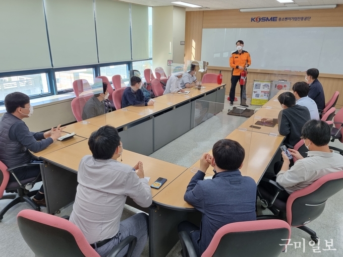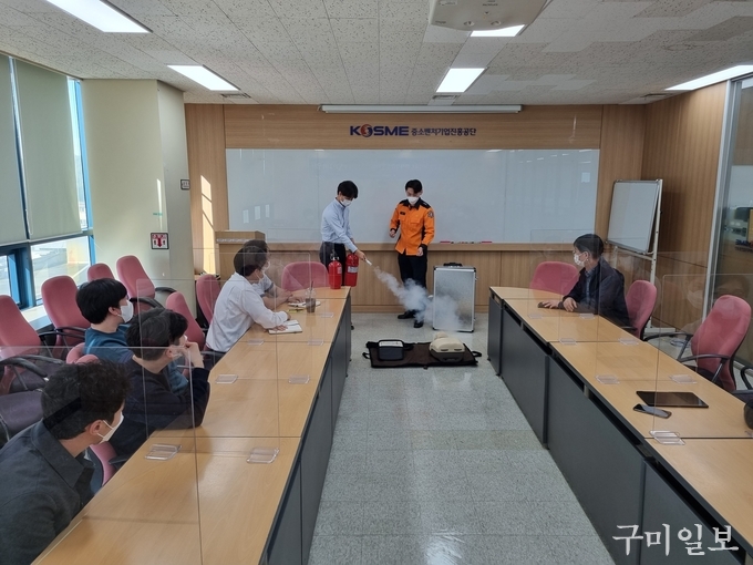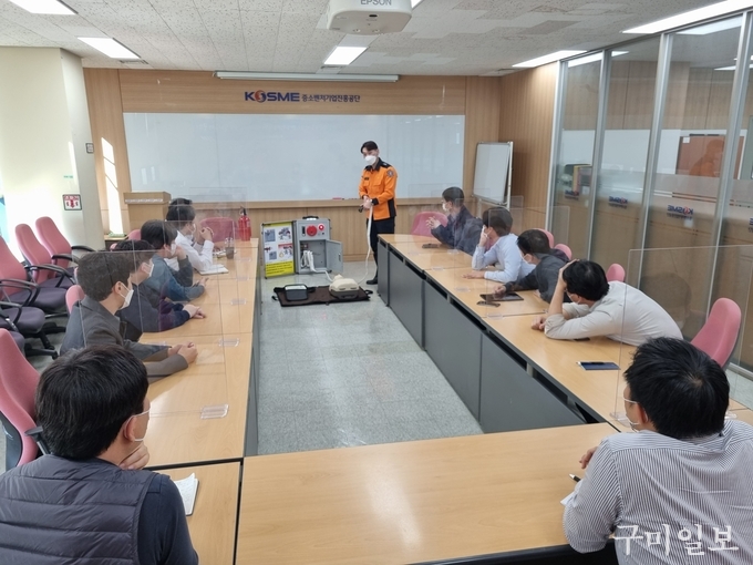 구미소방서(서장 한상일)는 10월 18일(월) 관내 중소벤처기업진흥공단 직원 20여명을 대상으로 심폐소생술 및 응급처치교육, 옥내소화전 체험교육 등을 실시했다.