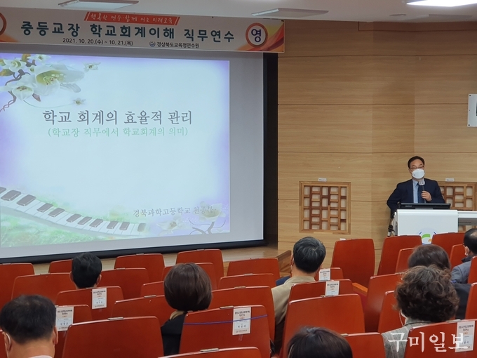 경상북도교육청연수원(원장 김현오)은 2021년 10월 20일(수)부터 10월 21일(목)까지 중등교장 30명을 대상으로 학교회계에 관한 학교장의 전문지식과 경영능력을 함양하기 위해 ‘중등교장학교회계이해직무연수’ 과정을 운영하였다.