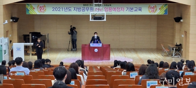 경상북도교육청연수원(원장 김현오)은 지방공무원 신규임용예정자 366명(교육행정 외 8개 직렬)을 대상으로 지난 10월 18일(월)부터 10월 28일(목)까지 9일간 신규임용예정자 기본교육을 실시하고 있다. 코로나19 상황에서 발열체크, 사회적거리두기 등의 방역지침을 철저히 준수하여 혼합연수로 운영하고 있다.