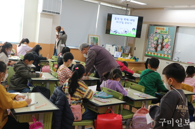 야은초등학교(교장 윤인숙)는 2021년 10월 28일(목), 전교생들이 참여하는 흡연 및 폭력 예방을 위한 체험활동을 실시하였다. 김천옛날 솜씨마을에서 전교생을 대상으로 머그컵 꾸미기로 진행되었다. 이 활동을 통해 학생들에게 스스로 할 수 있는 기회를 제공해서 성취감과 자신감을 느끼게 하고 자기 자신을 생각하며 스스로를 더욱 사랑할 수 있는 기회를 주는데 도움을 주고자 했다.