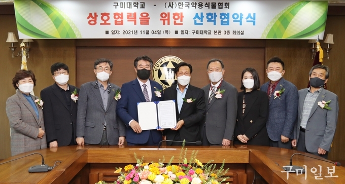 구미대학교(총장 정창주)는 11월 4일(목) 본관 3층 회의실에서 (사)한국약용식물협회(회장 김진명)와 산학협력 협약(MOU)을 체결했다고 밝혔다.