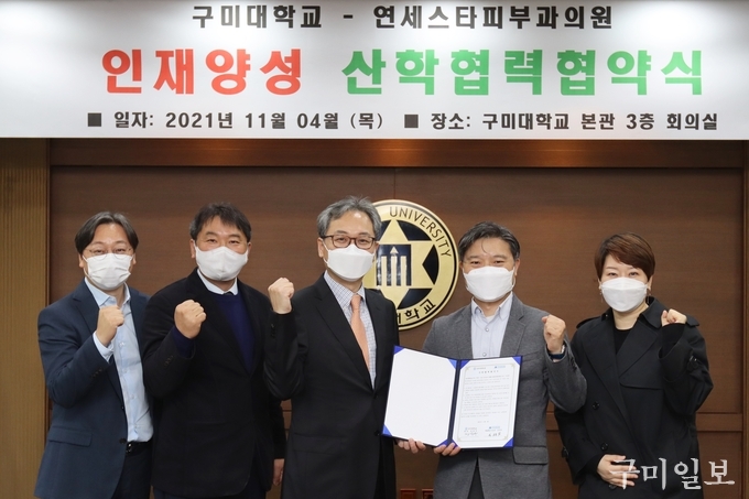 구미대학교(총장 정창주)는 지난 11월 4일(목) 서울 연세스타피부과의원과 전문인력 양성 및 취업지원에 관한 고용예약 협약(MOU)을 체결했다고 밝혔다.