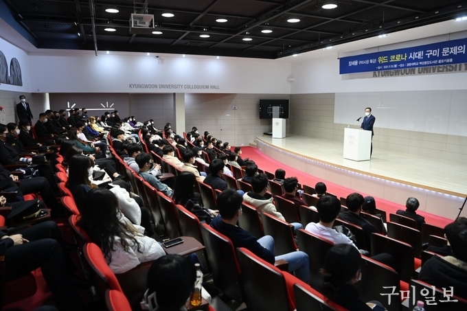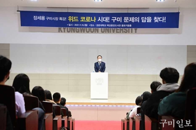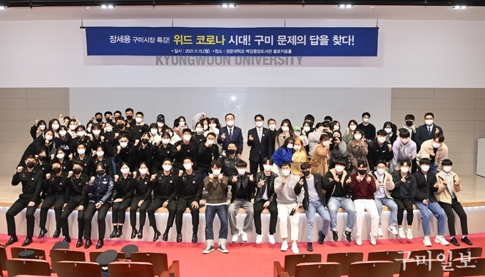 장세용 구미시장은 지난 11월 15일(월) 오후 3시, 경운대학교에서 ‘위드코로나 시대, 구미 문제의 답을 찾다’라는 주제로 특강했다.