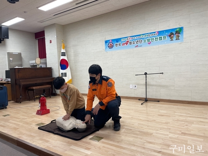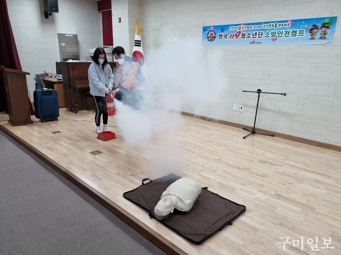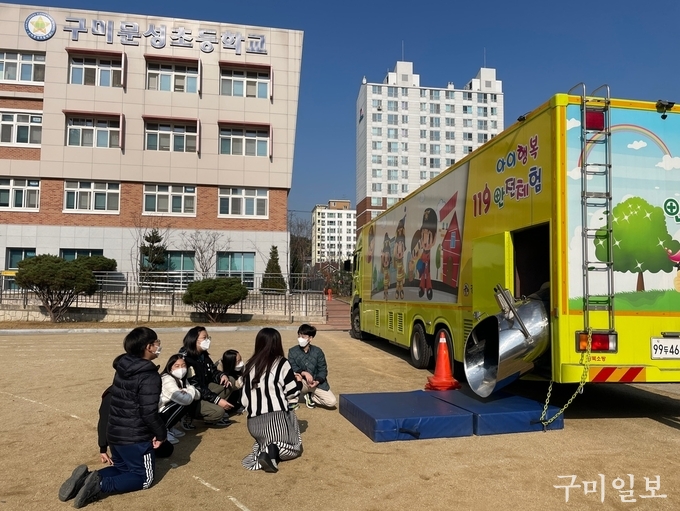 구미소방서(서장 한상일)는 11월 18일(목) 구미문성초등학교 119청소년단 26명을 대상으로 이동안전체험교육 및 교육용 소화기 체험 등 소방안전교육을 실시했다.