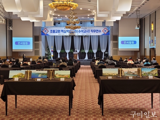 경상북도교육청연수원(원장 김현오)은 11월 19일(금)부터 11월 20일(토)까지 2일간 금오산호텔 및 연수원 소강당에서 초등 수석교사 45명이 참석한 가운데 ‘뉴노멀시대 학교 교육이 나아가야 할 가치와 방향’이라는 주제로 초등교원핵심역량강화직무연수를 실시했다.