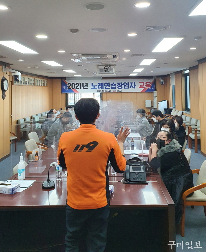 이번 교육은 청도군 노래연습장업자 교육에 관한 조례 제정 후 처음 실시하는 정기교육으로, 노래연습장 영업주를 대상으로 제도 변경사항, 노래연습장업 법령 설명 및 영업자 준수사항, 화재예방 및 전기안전 관리교육 순으로 진행되었다.