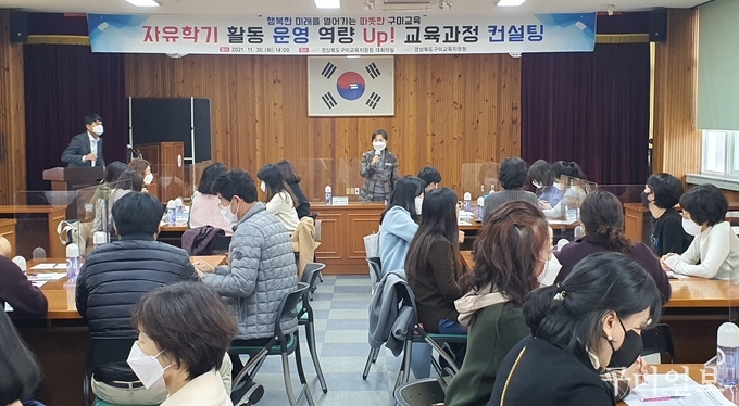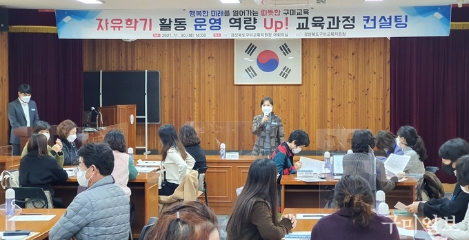 경상북도구미교육지원청(교육장 신동식)은 11월 30일(화) 오후 2시 4층 대회의실에서 구미 지역 중학교 자유학기제 업무담당자, 컨설턴트 35명을 대상으로 2022년 자유학기제 운영을 대비한 교육과정 컨설팅을 실시하였다.
