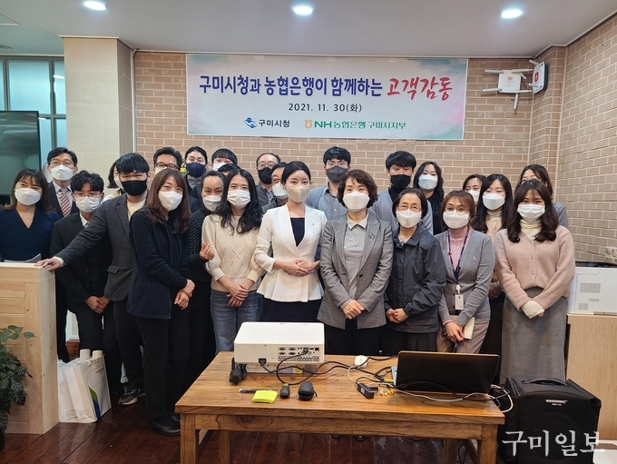 구미시(시장 장세용)는 지난 11월 30일(화) 오후 6시 30분 시청 민원실에서 NH농협 구미시청출장소 주관으로 민원담당공무원 및 농협직원 등 30여명 대상 민원응대 CS(고객만족)교육을 실시하였다.