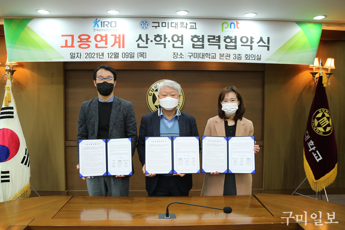 구미대학교(총장 정창주)는 지난 12월 9일(목) 한국로봇융합연구원 및 ㈜피엔티와 자동화 제어 전문인력 양성을 위한 산학연 협약을 체결했다고 밝혔다.