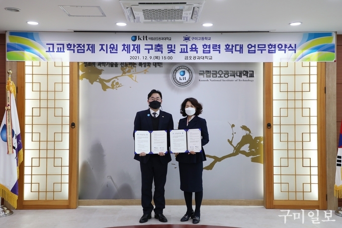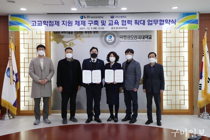 국립금오공과대학교 입학본부(본부장 김우석)는 지난 12월 9일(목) 구미고등학교(교장 이윤화)와 ‘고교학점제 지원 체제 구축 및 교육 협력’을 위한 업무협약을 체결했다.