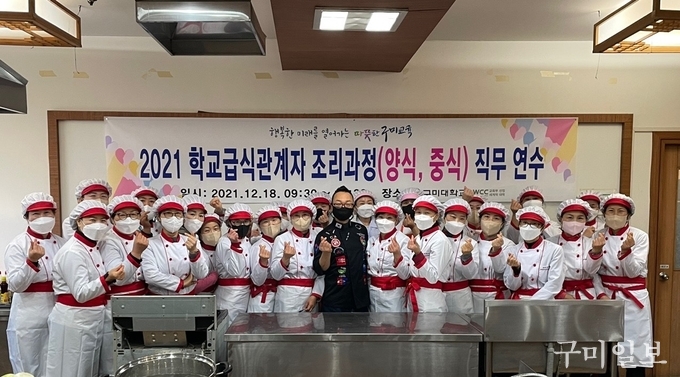 경상북도구미교육지원청(교육장 신동식)은 12월 18일(토), 구미대학교 조리실습실에서 관내 유·초·중·고등학교 조리사 80명(3개조)을 대상으로 학교급식 관계자 조리과정 직무연수를 실시하였다.