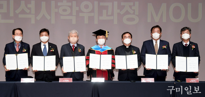 이어 선린대학교, 경북보건대학교 등 6개 대학*총장과 명예도민석사과정 운영 업무 협약식을 체결했다.