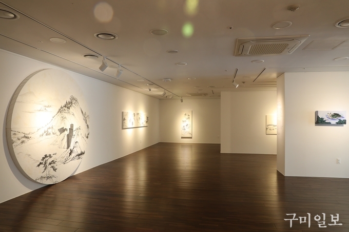 김민지 작가는 수묵의 자연 경관 대신 사람들이 인공적으로 만들어 놓은 건물과 도로, 자동차 등 현대 도시의 모습을 표현했다. 조선시대 산수화가 산에서 내려다 본 절경을 담았다면, 김민지 작가는 일체의 생명력을 배제한 채 수직으로 높게 솟은 빌딩과 수평으로 뻗어나가는 도로를 그리며 현대의 인공적인 풍경을 무심히 담아냈다.