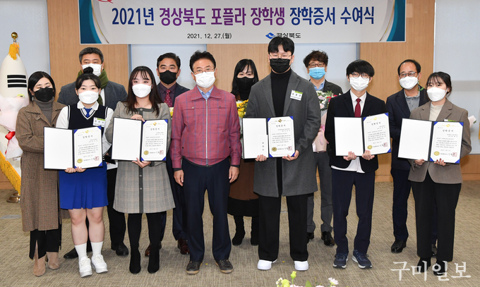 경상북도는 12월 27일(월) 도청에서 도내 임업인의 자녀와 산림분야 학생을 대상으로 포플라 장학생 23명을 선발, 장학증서 수여식을 갖고 장학금 100만원을 각각 지급했다고 밝혔다.