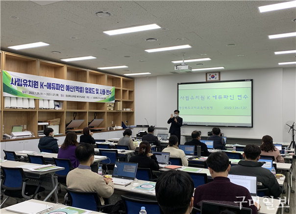 경상북도구미교육지원청(교육장 신동식)은 경상북도교육청 메이커교육관에서 지난 1월 26일(수)부터 1월 27일(목)까지 총 2일간 관내 사립유치원을 대상으로 2022학년도 사립유치원 K-에듀파인 예산 교육을 실시했다.