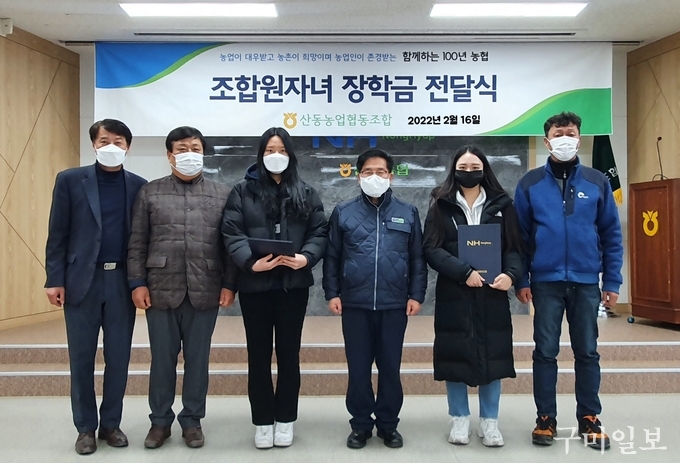 산동농협(조합장 김택동)은 2022년 2월 16일(수) 산동농협(본점 2층 대강당)에서 조합원자녀 중 2022년 2월 고등학교 3학년 졸업예정자 32명을 대상으로 장학금 1,600만원을 전달했다.