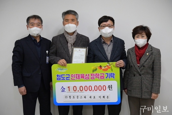 이재봉 ㈜청도굿스파 대표도 장학회에 1,000만 원의 장학기금을 쾌척하며 기부행렬에 동참했다. 이재봉 대표는 평소 청도군의 자라나는 학생들이 곧 청도군의 미래라며 장학사업에 많은 관심을 가지고 관내 학생들의 교육 복지 여건 개선을 위한 다양한 사업을 장학회 측에 제안하고 있다.