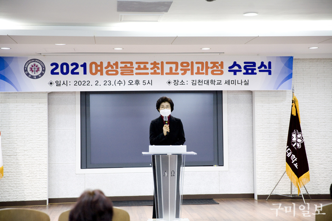 윤옥현 김천대학교 총장은 “코로나 19로 어려운 상황 속에서도 1년간의 교육과정을 무사히 마치고 수료하게 된 것을 축하드리며, 김천지역의 골프를 한층 업그레이드 시키는 여성골프최고위과정이 되었다고 생각하고 앞으로 명실상부한 지역 최고의 여성최고위골프과정으로 발전하길 바란다”고 하였다.