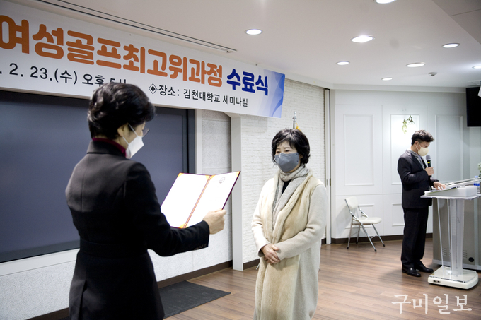 김천대학교(총장 윤옥현) 평생교육원에서는 여성골프최고위과정 수료식을 2월 23일(수) 오후 5시 본관 세미나실에서 개최하여 21명이 수료하였다.
