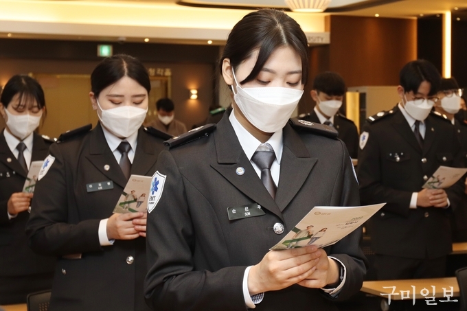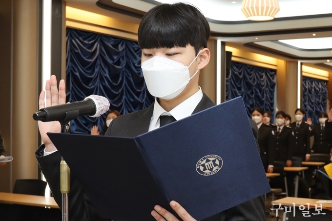 이어 입학생 선서에서 입학생을 대표해 김형준 학생(응급의료부사관과)이 학칙을 준수하고 학생으로서 책임과 본분을 다할 것을 선서했다.