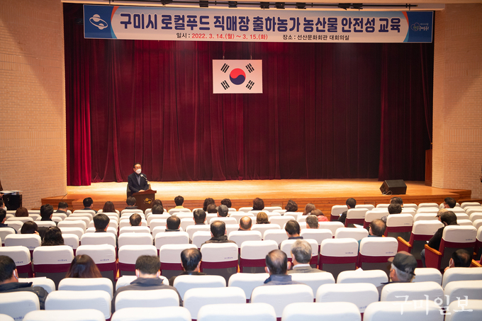 구미시(시장 장세용)는 구미에서 생산되는 우수 농ㆍ특산물의 직거래를 통해 생산자와 소비자가 상생하는 역할을 담당할 구미 로컬푸드 직매장(금오산점) 출하농가 모집을 위하여 출하농가 인증제도 및 안전관리 교육을 선산문화회관 회의실에서 3월 14일(월)~3월 15일(화) 2일간 오전 오후 총 4회 실시하였다.