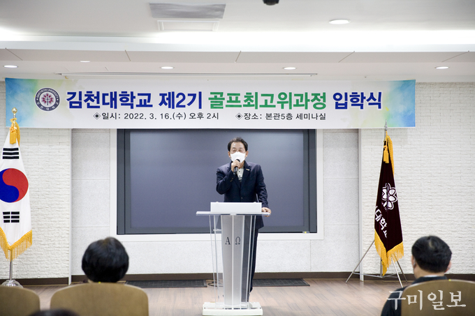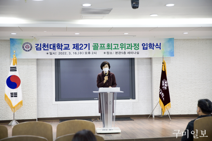 이날 입학식에는 윤옥현 김천대학교 총장, 김순희 평생교육원장, 서정희 김천시체육회장, 김성태 경상북도골프협회장이 참석한 가운데 김두학 평생교육원 과장의 사회로 진행됐다.