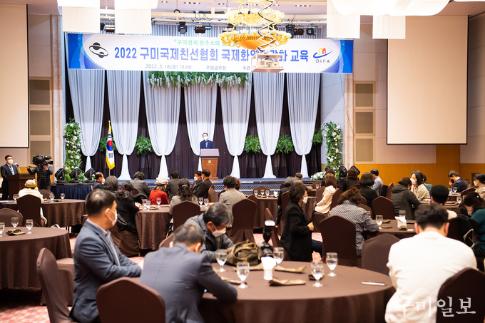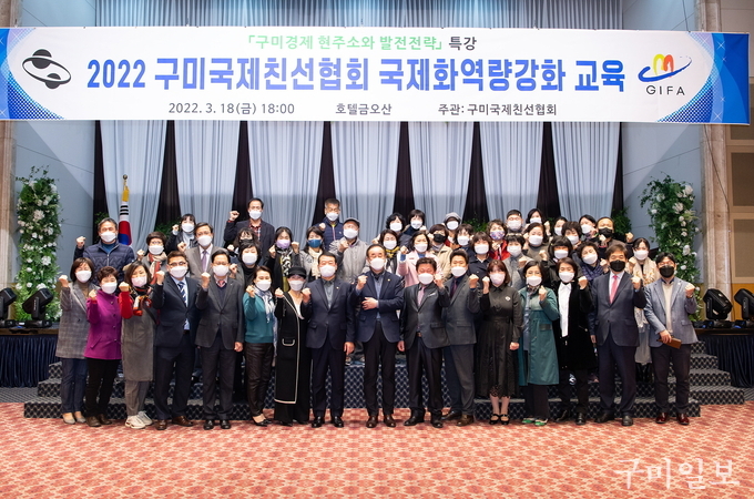 구미국제친선협회(회장 김수환)는 지난 3월 18일(금) 오후 6시 호텔금오산에서 회원들의 국제화 마인드 함양을 위한 상반기 「구미국제친선협회 국제화 역량강화교육」을 실시하였다.