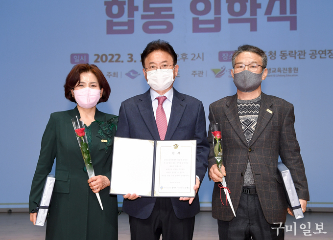 이날 행사는 지난해 도민대학 활동 영상과 성과보고, 신입생 대표 선서(석사과정 김형도 대표, 학사과정 정영옥 대표)와 배지 수여, 총장 인사(이철우 도지사)와 새로운 도전을 응원하고 입학을 축하하는 ‘창조적 학습공동체’레이저 퍼포먼스 순으로 진행됐다.