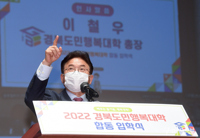 이철우 경북도민행복대학 총장(도지사)은 “새로운 지식이 초 단위로 쏟아져 나오는 예측 불가시대에 살고 있다. 늘 공부하는 사람은 정신이 건강해져 늙지 않으며 행복한 삶을 살 수 있다”며 “도민행복대학을 통해서 다양한 학문을 배우고 경험을 공유하면서 지역사회 발전의 리더 역할을 해 주길 기대한다”고 밝혔다.