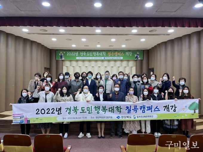 칠곡군 교육문화회관은 지난 4월 6일(수) 40여명의 입학생이 참석한 가운데 2022년 경북도민행복대학 칠곡군캠퍼스 입학식을 개최했다.