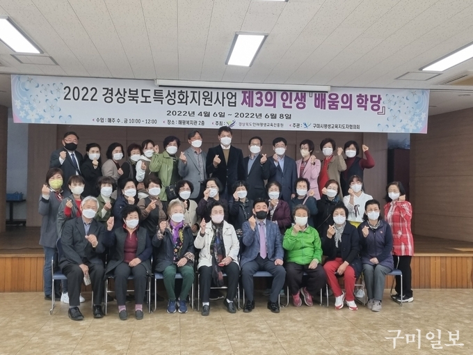 구미시평생교육지도자협의회(회장 박하용)는 지난 4월 6일(수) 오전 10시 해평면 복지회관에서 수강생 20여명이 참석한 가운데 제3인생학교, 『배움의 학당』교육과정을 개강하였다.