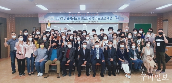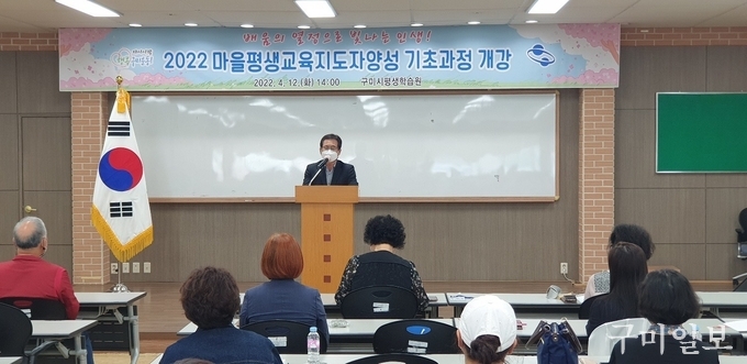 구미시(시장 장세용)는 4월 12일(화) 오후 2시 평생학습원에서 평생학습원장을 비롯해 평생교육지도자협의회 임원 및 학습생 등 50여명이 참석한 가운데 ‘2022년 마을평생교육지도자 양성과정’을 개강했다.