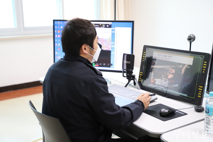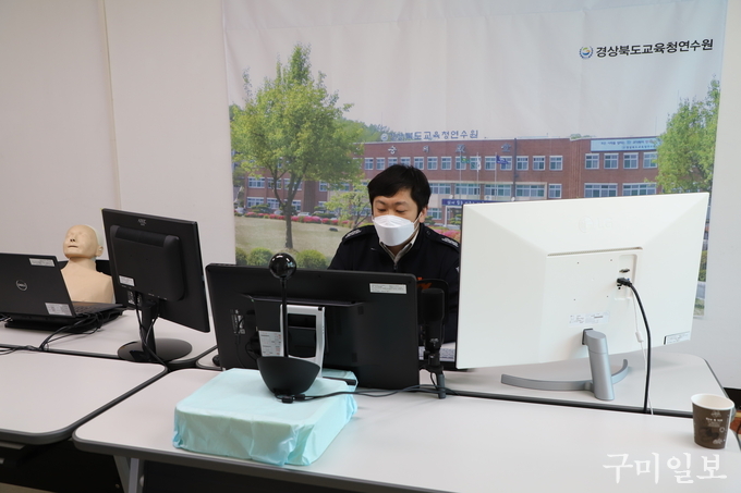 구미소방서(서장 정훈탁)는 4월 19일(화) 경북교육청 연수원에서 당직전담 및 문단속요원을 대상으로 소화기, 심폐소생술 등 비대면 소방안전교육을 실시했다.