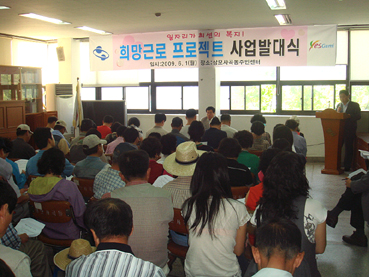 그 동안 일을 하고 싶어도 일자리가 없어 방황하던 실직자들에게 땀 흘려 근로하고 지역사랑을 몸소 실천할 수 있는 희망의 장을 활짝 열었다. 희망근로 사업 참여자들은 등산로 정비, 박정희로 꽃길조성, 소하천 정비, 불법광고물 정비 사업 등에 참여하게 되며, 6개월간 희망근로 사업을 통해 상모 사곡동 주거환경이 획기적으로 변화하여 살기 좋은 동네 조성에 크게 기여할 것으로 보인다. 오늘 행사는 의식행사, 동장 인사, 참여자 선서, 희망근로사업상세 설명 및 안전교육 순으로 진행되었으며, 동에서는 본격적인 여름철이 도래함에 따라 안전관리에 우선을 두고 사업목적을 달성할 수 있도록 근무시간을 탄력적으로 운영하여 안전사고 제로화에 역점을 두고 진행 할 것이다. 박세범 동장은 “이번 희망근로 사업을 통해 실직자 및 저소득 계층에게 일할 수 있는 계기를 제공하여 가정의 행복과 더불어 지역경제 활성화에 크게 기여할 것으로 기대된다”고 참가자들을 격려하였으며 아울러 “희망근로를 통하여 우리 지역주민들의 삶의 질이 한 단계 높아질 수 있도록 최선을 다해줄 것과, 무엇보다도 사업 중 안전사고가 발생하지 않도록 각별한 주의를 기울여 달라”고 당부하였다. |