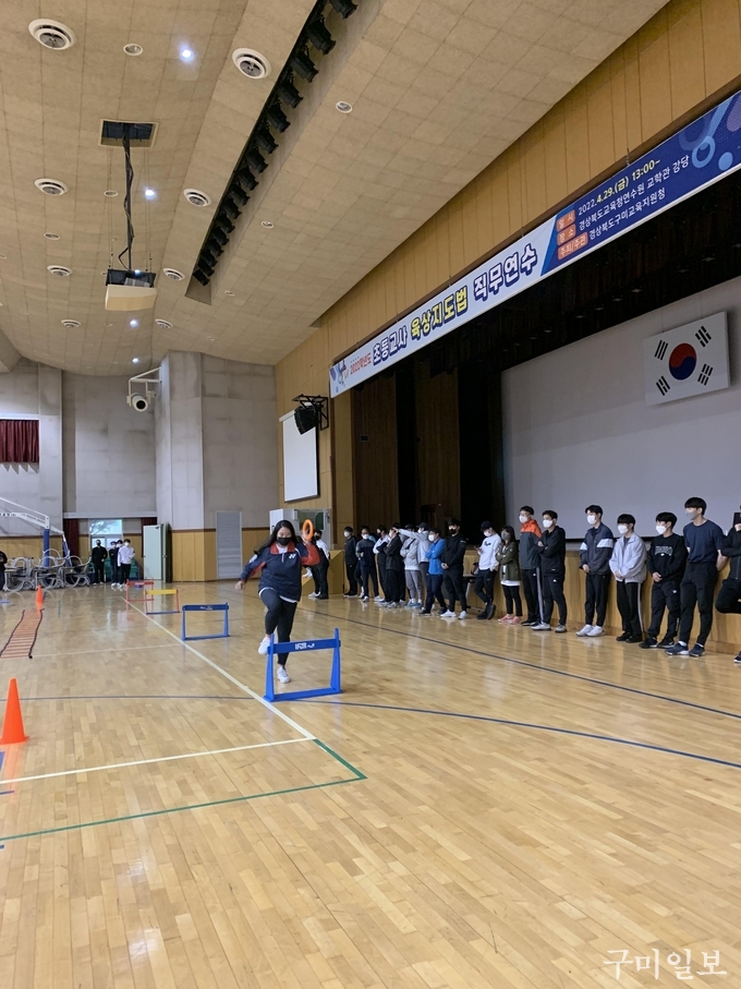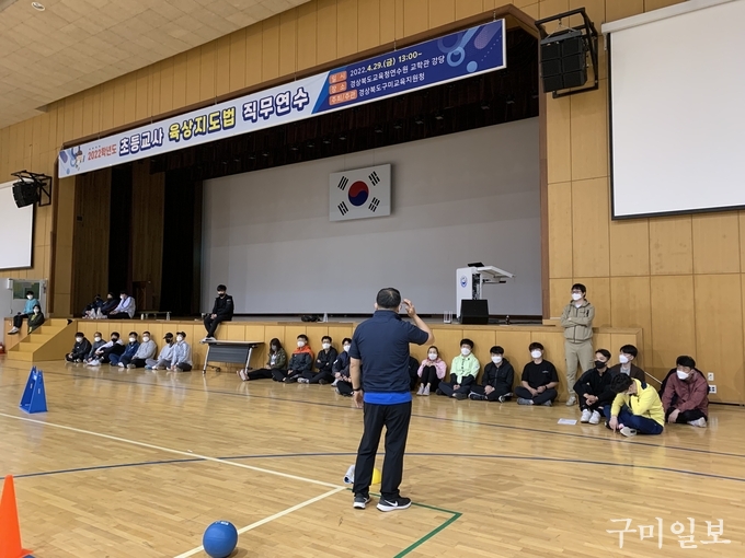 경상북도구미교육지원청(교육장 이성희)은 2022년 4월 29일(금) 경북교육청연수원 교학관 대강당에서 구미시 관내 초등교사 60여명을 대상으로 육상지도법 연수회를 개최하였다.