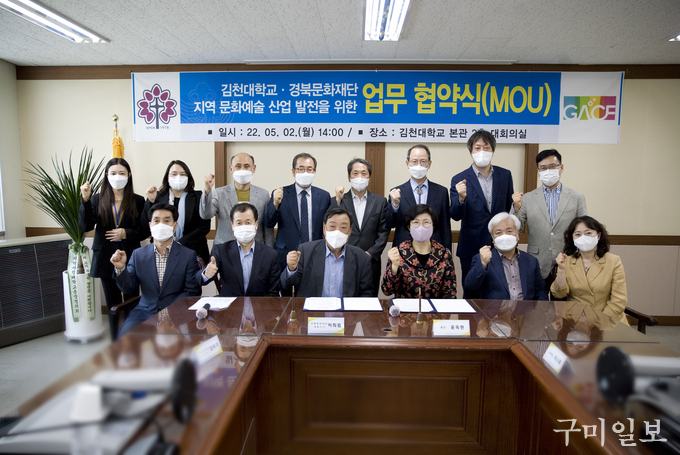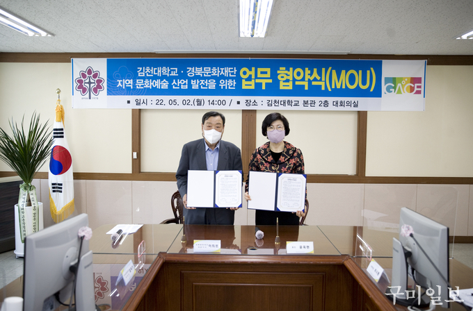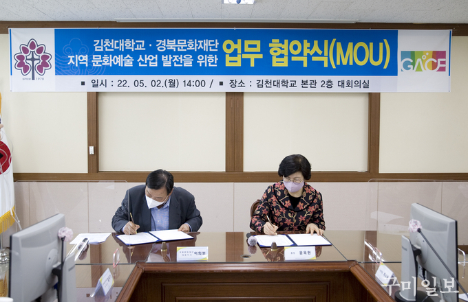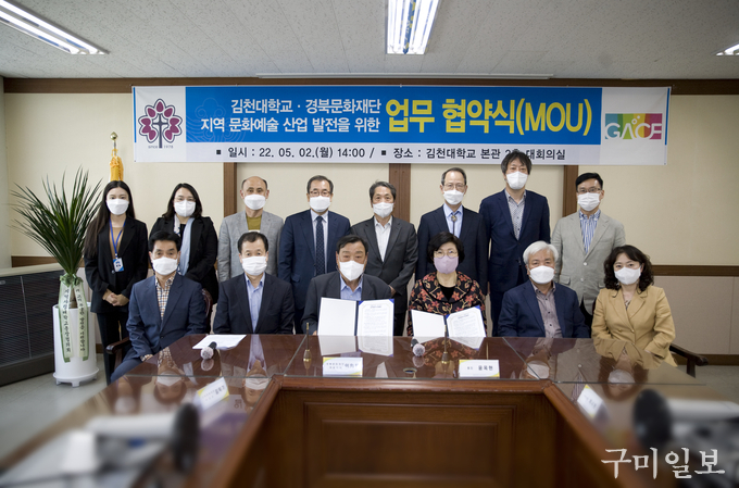김천대학교(총장 윤옥현)와 경북문화재단(대표이사 이희범)이 지난 5월 2일(월) 김천대학교에서 상호신뢰와 협력을 바탕으로 도내 문화예술 진흥을 위한 교류활성화 업무협약(MOU)을 체결하였다.